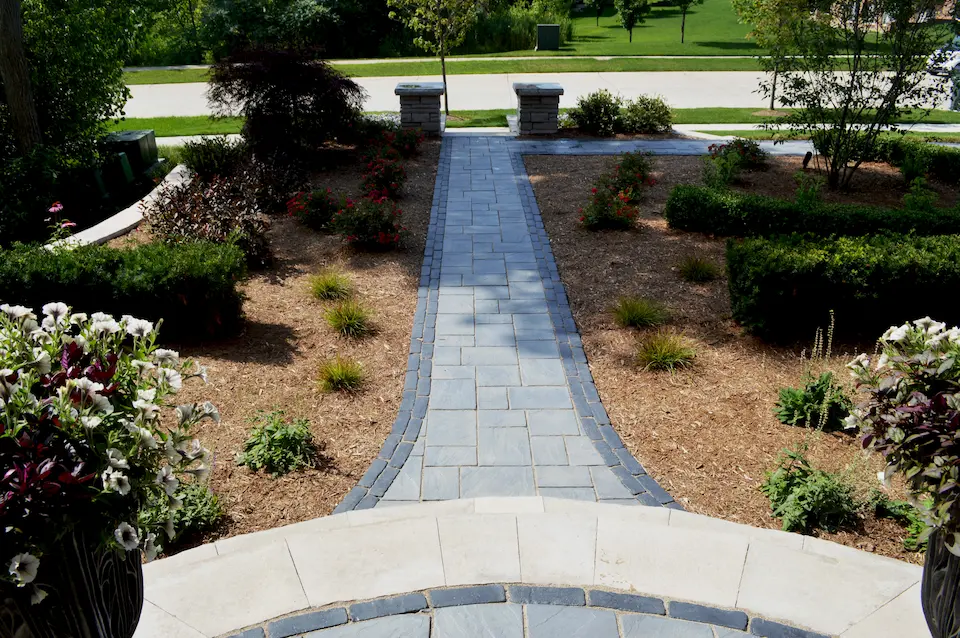 - Hardscape: Includes materials that are incorporated into a landscape like pavers, retaining walls, patios, fire pits, walkways, and water features.