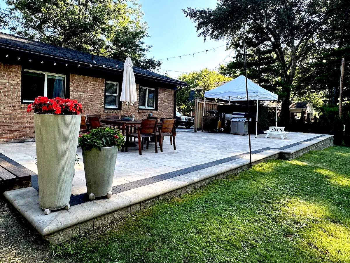 For this project, the homeowners opted for a phased approach to transforming their outdoor space. Their initial goal was to install a patio they could enjoy right away, with plans to complete the landscaping and front walkway the following season. By breaking the project into stages, they were able to thoughtfully build a cohesive design that would evolve into a fully finished outdoor environment.