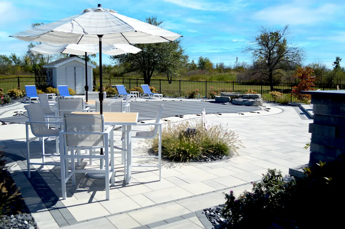 To complete the project, deer-resistant, low-maintenance plantings were installed around the perimeter of the pool area, softening the hardscape while delivering a polished, finished look. The result is a tranquil backyard retreat that feels luxurious, functional, and perfectly tailored for entertaining or quiet relaxation.