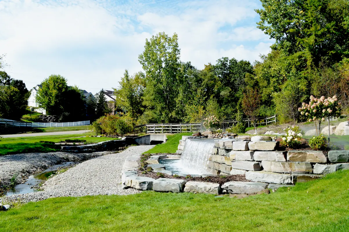 For the Clear Creek Sub Waterfront, the goal was to enhance a newly redone retaining wall and water feature with landscaping that felt inviting, natural, and welcoming to visitors. The homeowners wanted the area to feel less like a pass-through and more like a destination—a place where people could pause, gather, and enjoy the surroundings.