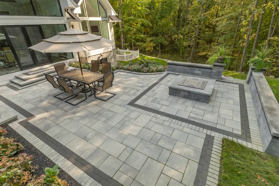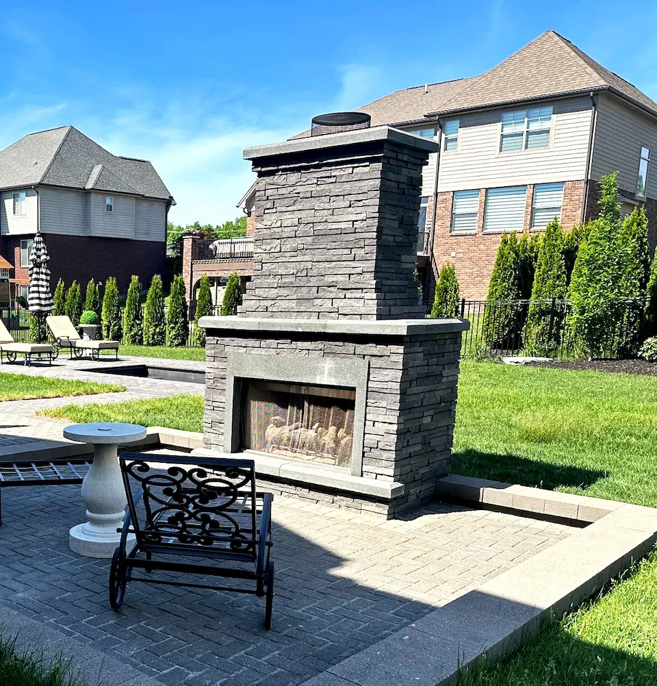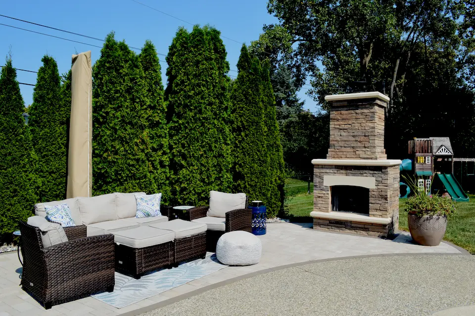 - Rock, stone, or brick: Patios can be as intricate or simple as you want, depending on your vision and how much space is available. Decorative pavers, steps, retaining walls, or seating areas can surround your fireplace or fire pit for complementary hardscape materials.