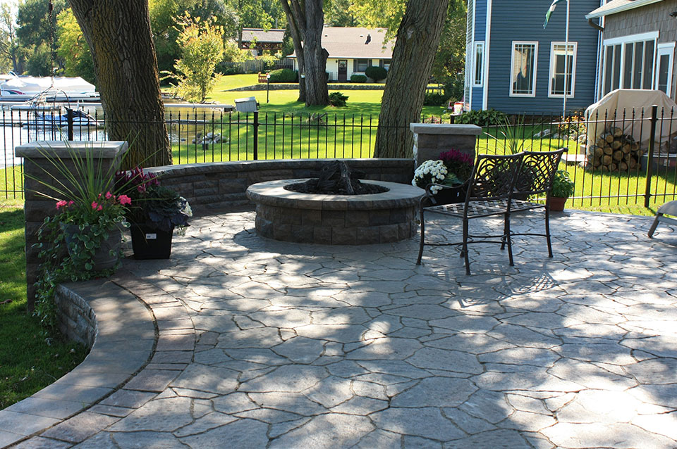 - Rock, stone, or brick: Patios can be as intricate or simple as you want, depending on your vision and how much space is available. Decorative pavers, steps, retaining walls, or seating areas can surround your fireplace or fire pit for complementary hardscape materials.