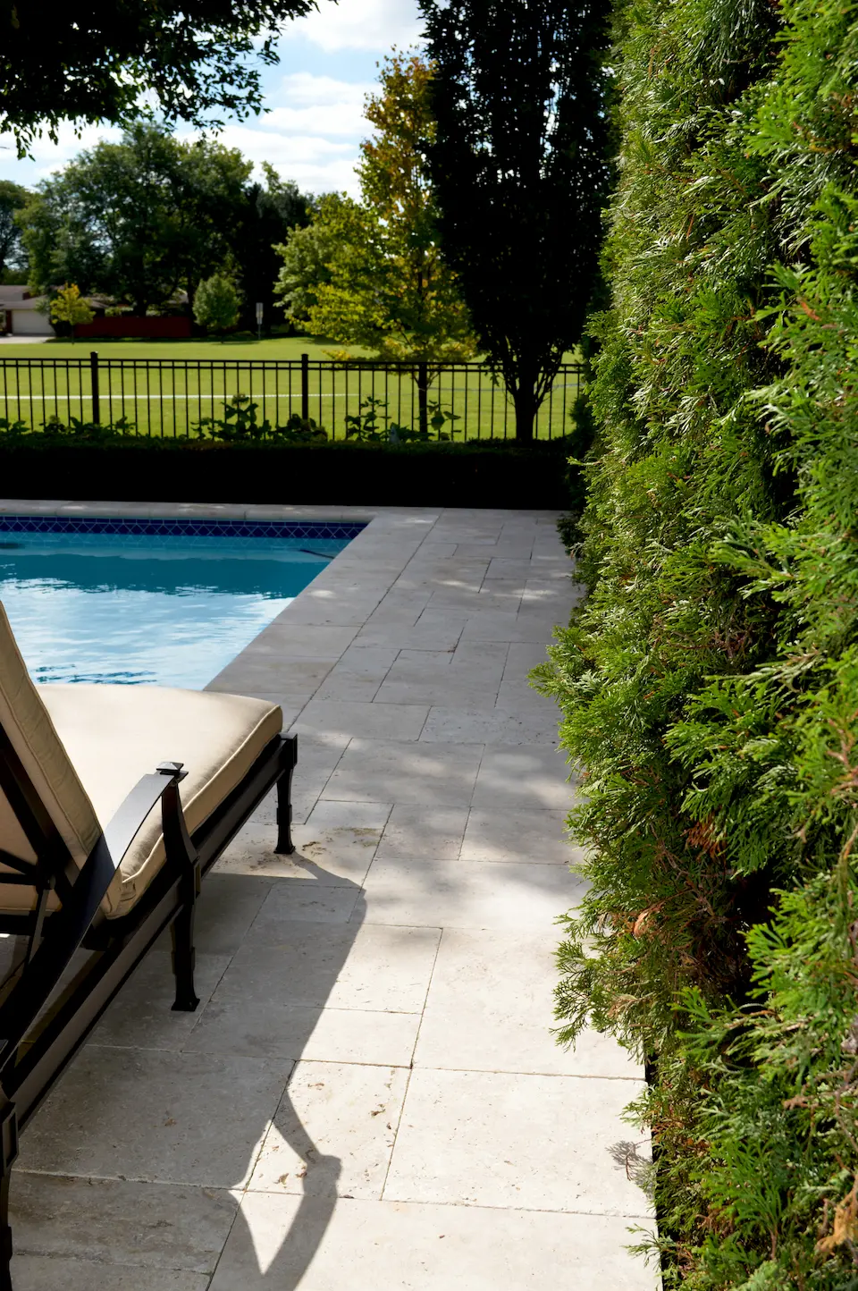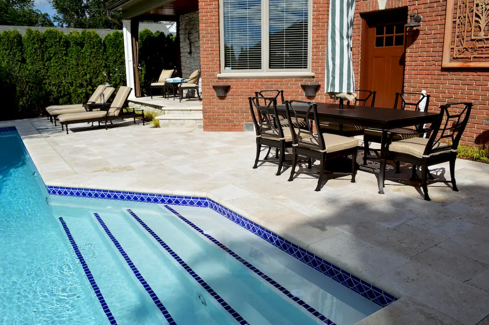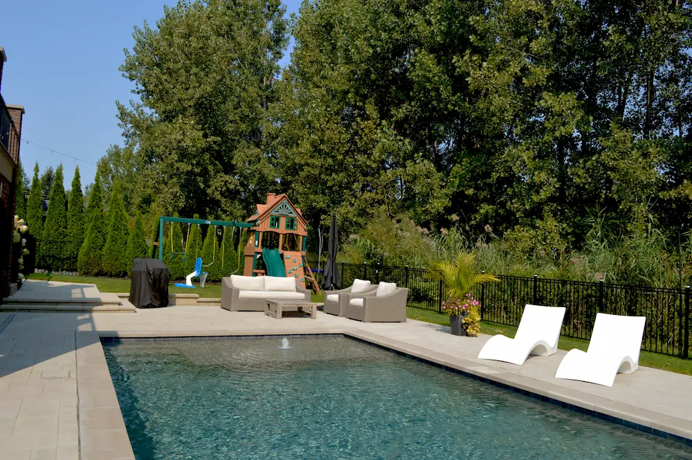 Since most people go barefoot in this area, it’s crucial to choose pool decking materials that are slip-resistant when wet and won’t become unbearably hot under the summer sun. Both comfort and safety should be top priorities when designing this key part of your outdoor space.