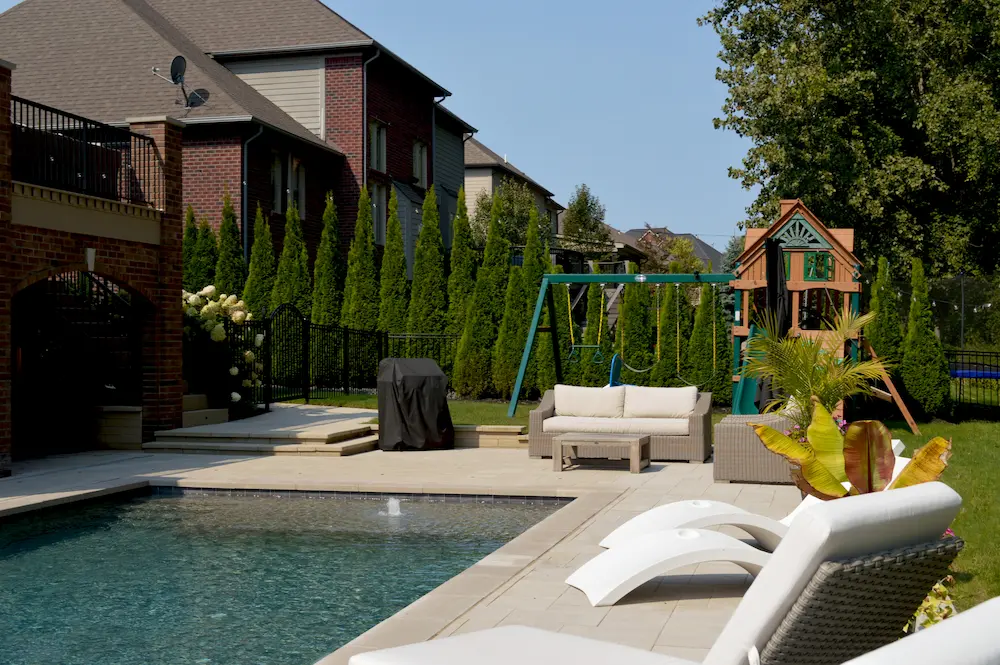 - Fire Pit: There’s nothing nicer than cozying up by the fire after a dip in the pool, especially on cool summer nights. A nearby fire pit offers seating, warmth, and (hopefully) snacks.